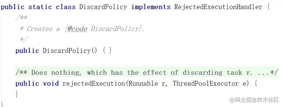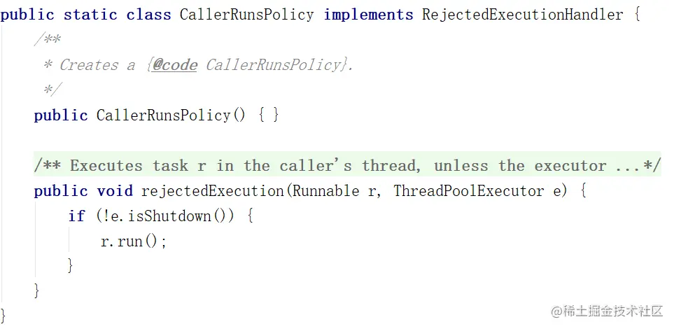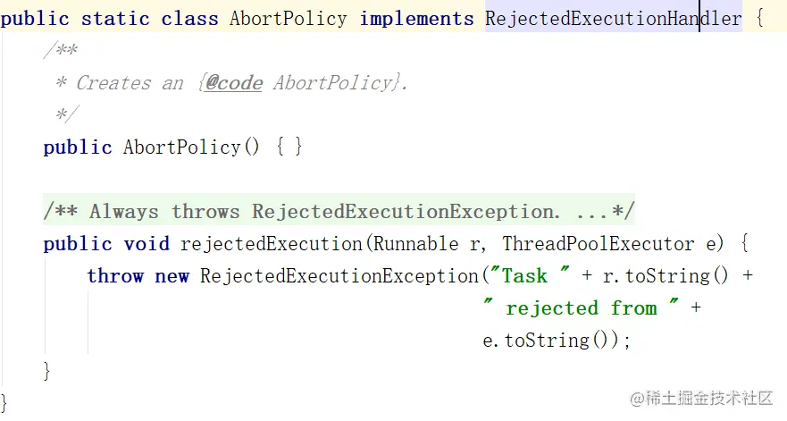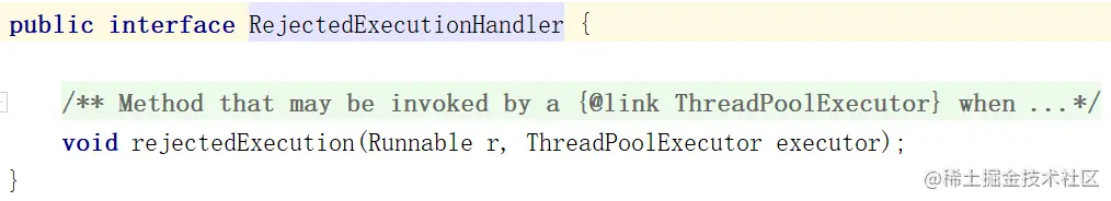 一般情况下,线程池自带的无法满足业务时,自定义一个线程池的拒绝策略,实现下面的接口即可。