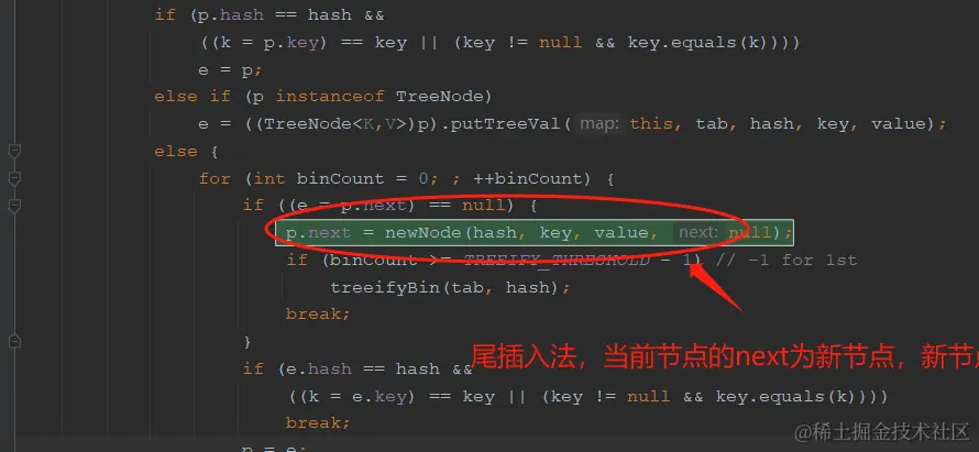 区别于jdk1.7,jdk1.8已经使用了尾插法实现链表元素的插入。