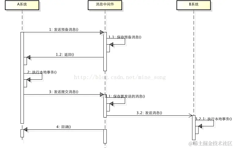 基于音讯中间件的两阶段提交常常用在高并发场景下,将一个散布式事务拆成一个音讯事务(A系统的本地操作+发音讯)+B系统的本地操作,其中B系统的操作由音讯驱动,只需音讯事务胜利,那么A操作一定胜利,音讯也一定发出来了,这时分B会收到音讯去执行本地操作,假如本地操作失败,音讯会重投,直到B操作胜利,这样就变相地完成了A与B的散布式事务。原理如下: