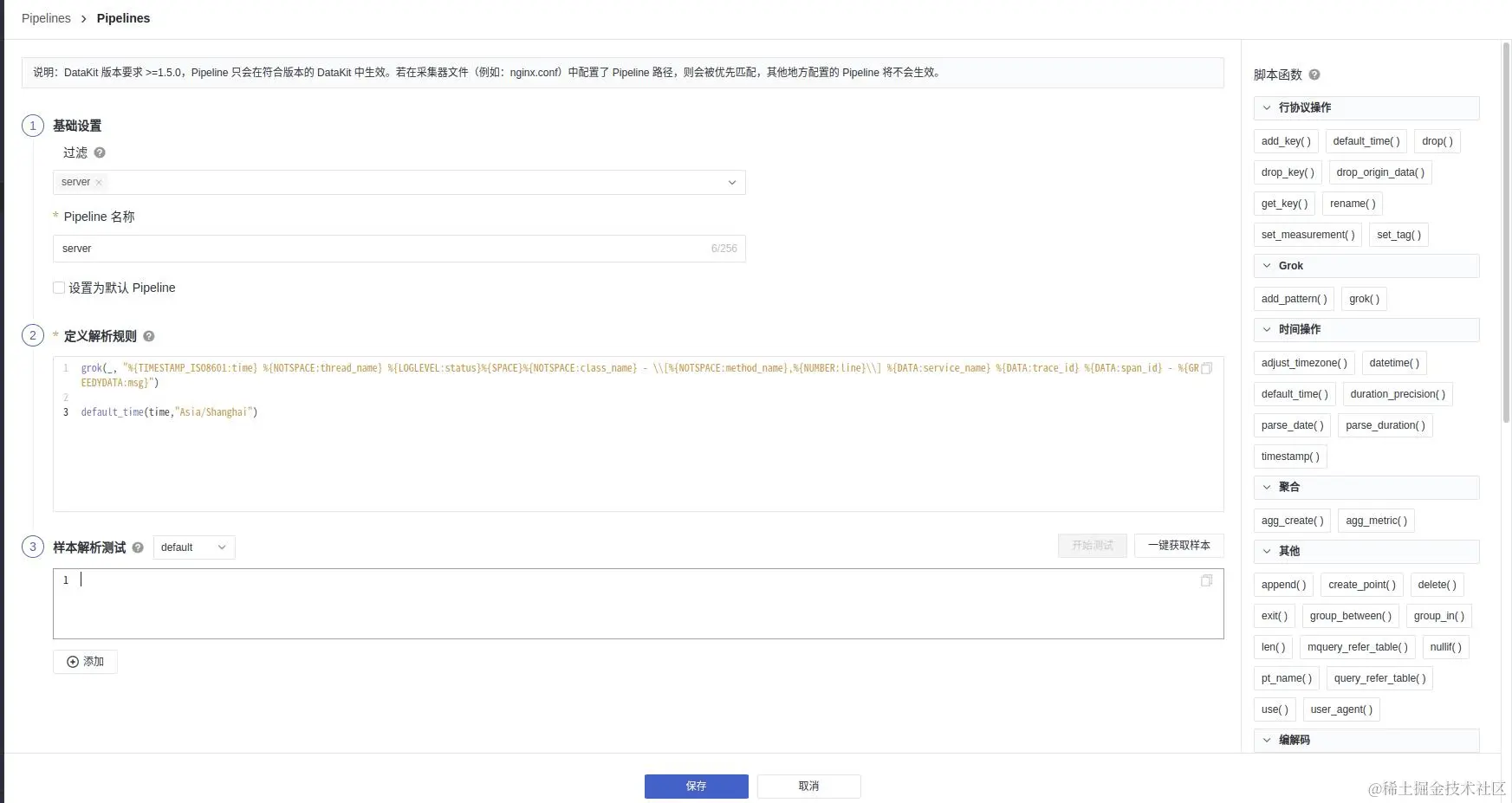 日志 pipeline 用于解析日志格式