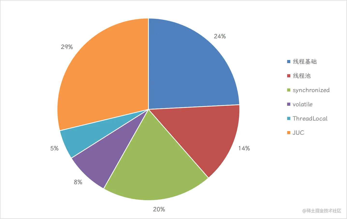 从图中看,ThreadLocal和volatile出现概率较低,但个人建议面试准备中,并发编程的部分要全量准备。