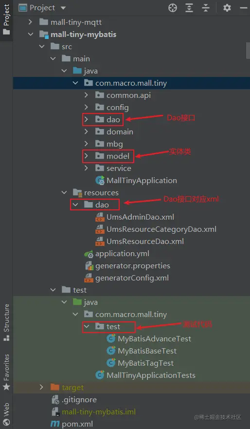 本文示例使用了mall-learning项目中的mall-tiny-mybatis模块代码,具体项目结构如下。