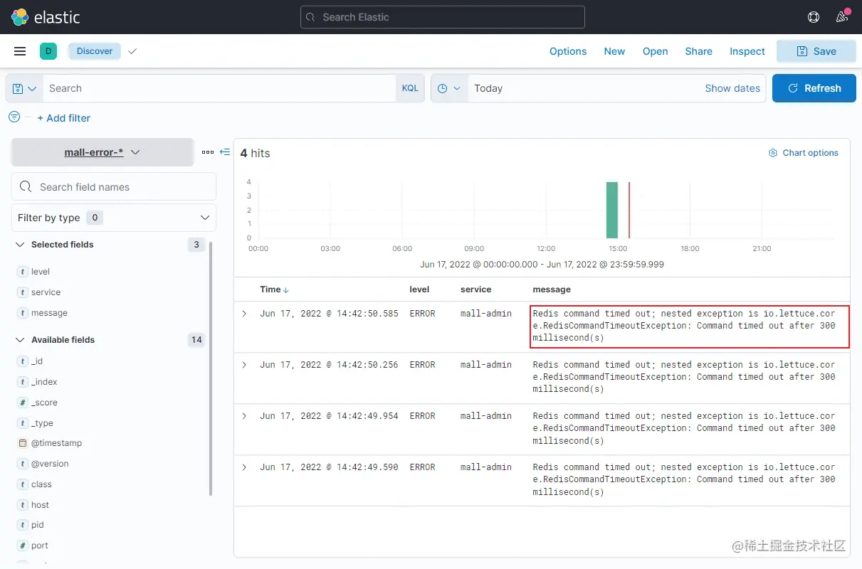 mall-error日志可以快速获取应用的报错信息,准确定位问题,例如把Redis服务给停了,这里就输出了日志;