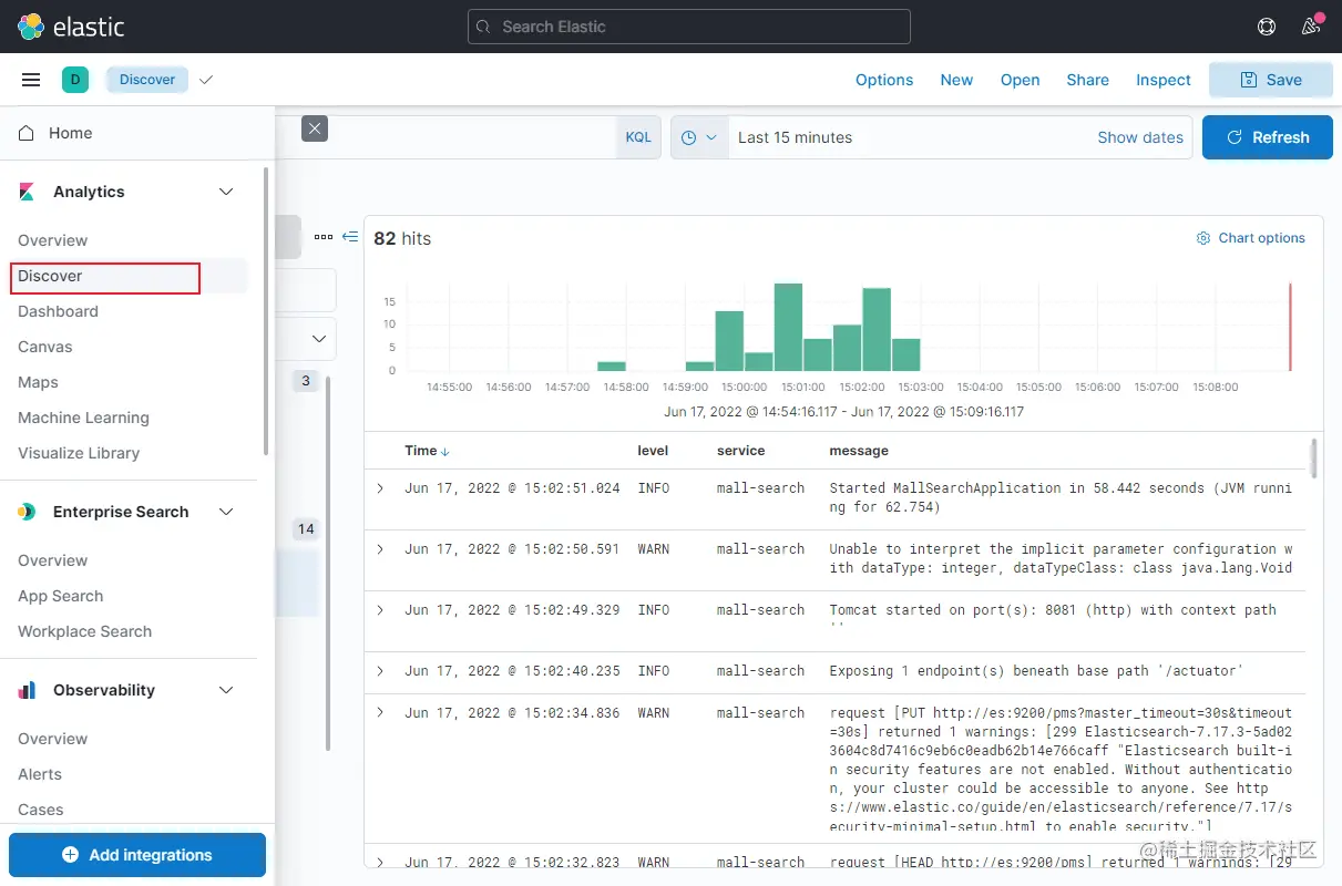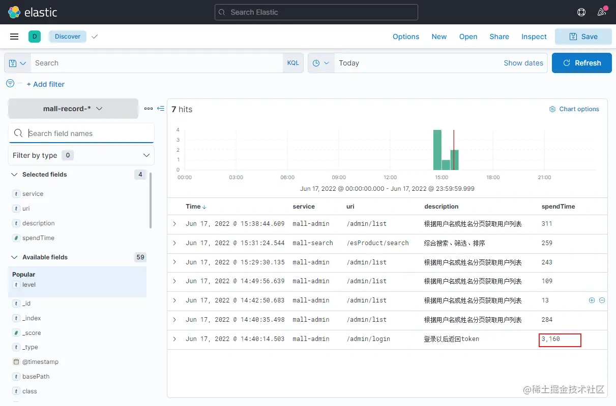 接下来我们体验下Kibana的可视化日志分析功能,以mall项目为例,确实很强大!