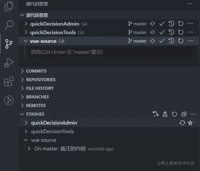因为当前有文件更改了,需要提交commit保持工作区干净才能切分支。由于情况紧急,你只有急忙 commit 上去,commit 信息也随便写了个“暂存代码”,于是该分支提交记录就留了一条黑历史...(真人真事,看过这种提交)