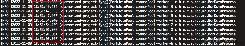 经过查看日志发现这个mq消息处理很频繁,每秒都会有很多的数据上来。