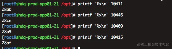 同时我们将线程比较的PID转换成16进制:printf "%x\n" 10411