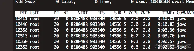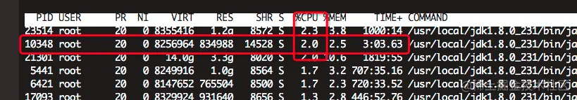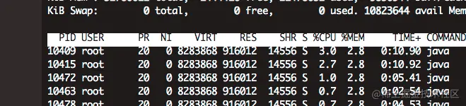 紧接着使用jstack命令生成java虚拟机当前时刻的线程快照,生成线程快照的主要目的是定位线程出现长时间停顿的原因,如线程间死锁、死循环、请求外部资源导致的长时间等待等。 线程出现停顿的时候通过jstack来查看各个线程的调用堆栈,就可以知道没有响应的线程到底在后台做什么事情,或者等待什么资源