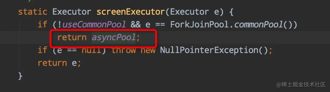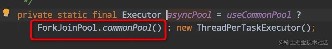 这里补充一点:CompletableFuture是否使用默认线程池的依据,和机器的CPU核心数有关。当CPU核心数减1大于1时,才会使用默认的线程池(ForkJoinPool),否则将会为每个CompletableFuture的任务创建一个新线程去执行。即,CompletableFuture的默认线程池,只有在双核以上的机器内才会使用。在双核及以下的机器中,会为每个任务创建一个新线程,等于没有使用线程池,且有资源耗尽的风险。