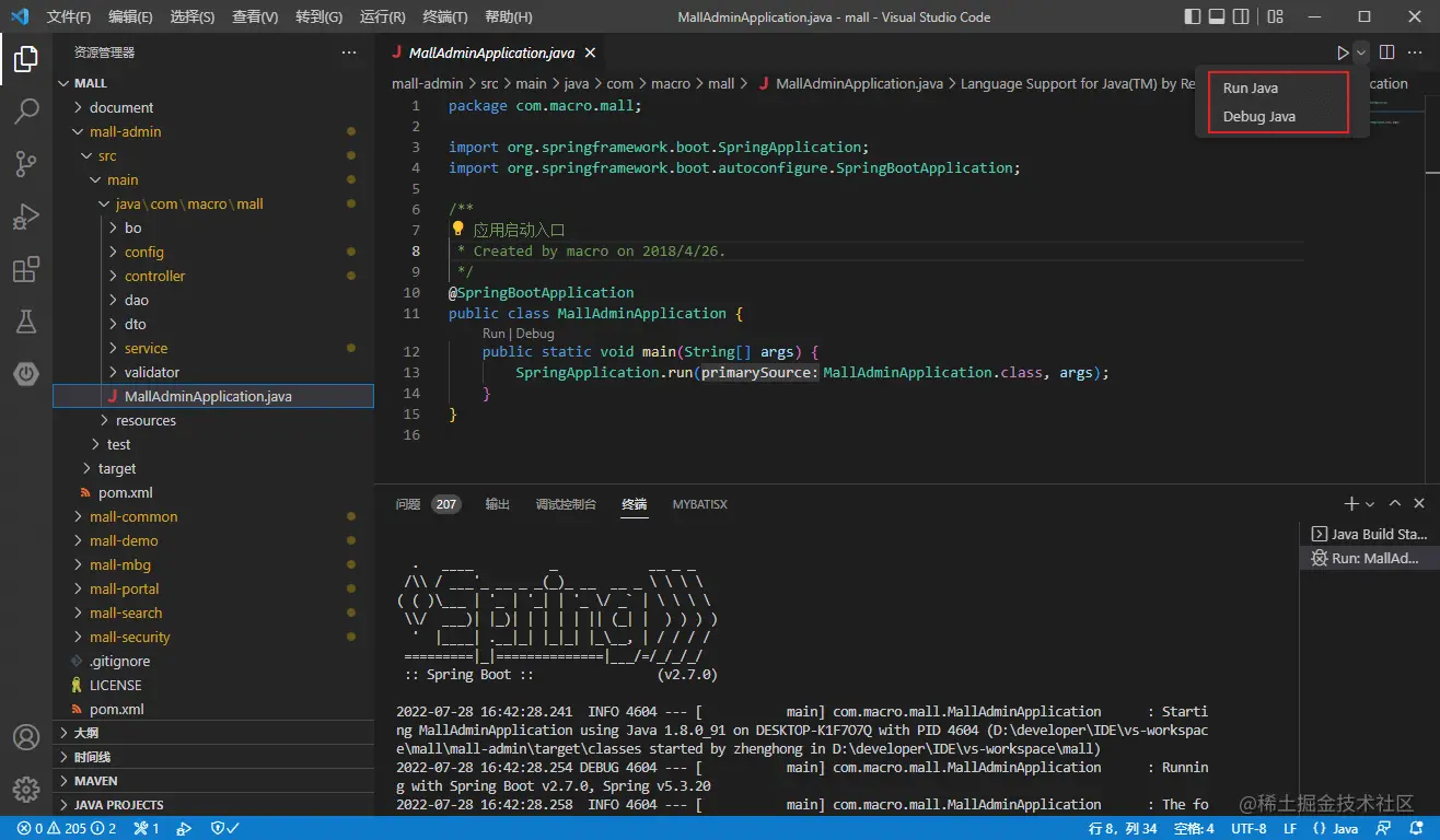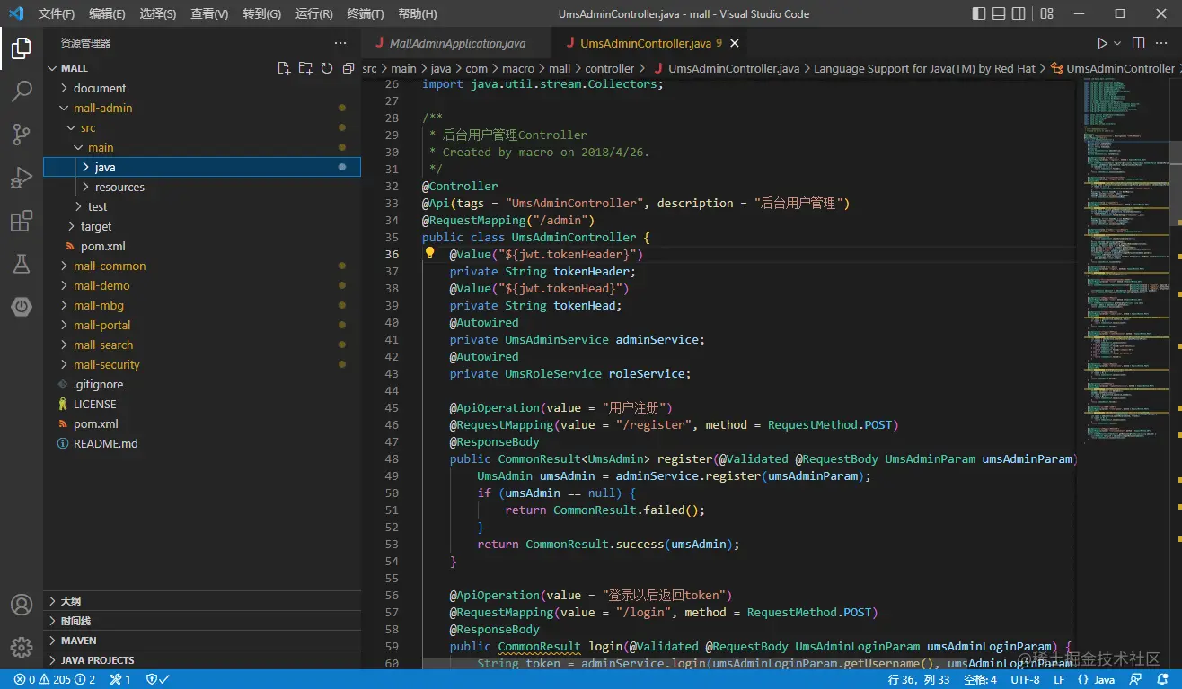 接下来将以我的开源电商项目mall为例,来聊聊如何使用VSCode开发SpringBoot应用。