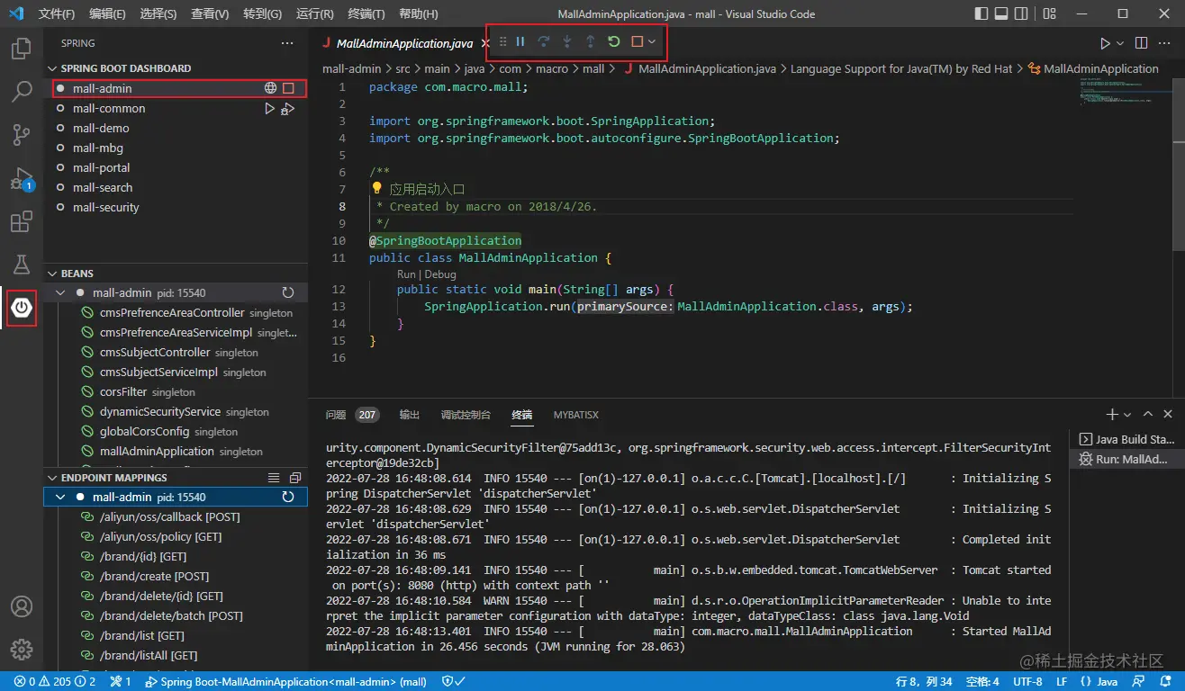 - 由于我的mall项目使用的SpringBoot,还可以使用