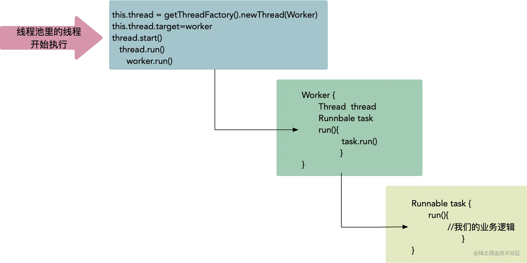 不是,是Worker,Worker是线程池中的线程和任务task之间的纽带