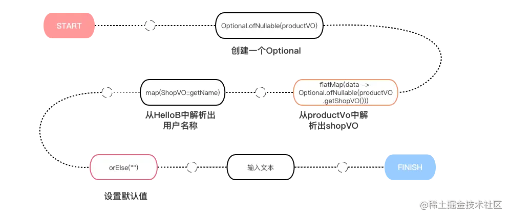 调用链上的任何一个方法,返回一个空,那么结果就是我们设置的默认值