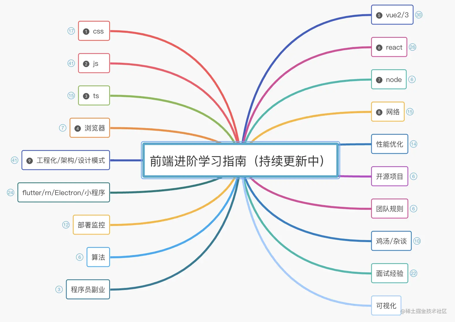 在线整理的确实很好,对掘金的文章进行了一个汇总整理,在线刷题指南,拿走不谢,要学会站在别人的肩膀上提升自己点击这里--> 前端进阶指南