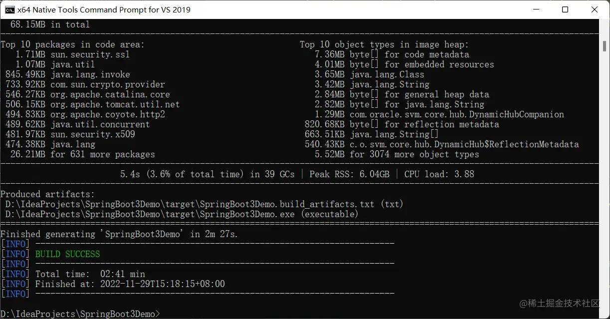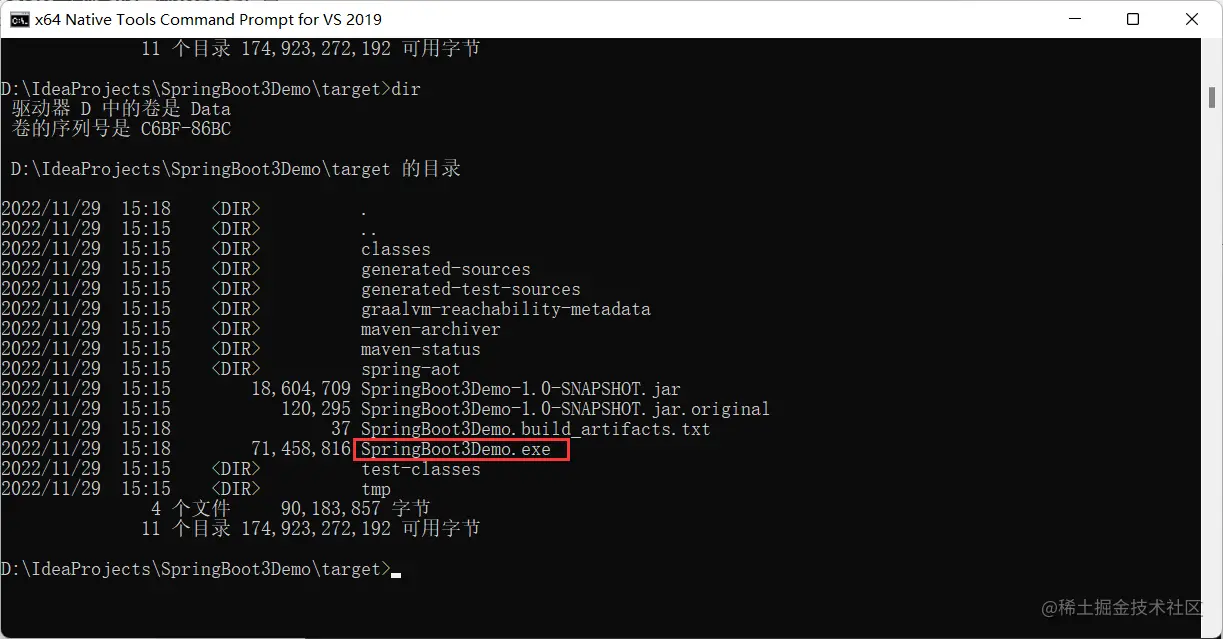 注意这种方式并不要求你机器上安装了 GraalVM,会由 SpringBoot 插件利用/paketo-buildpacks/native-image 来生成本地可执行文件,然后打入到容器中