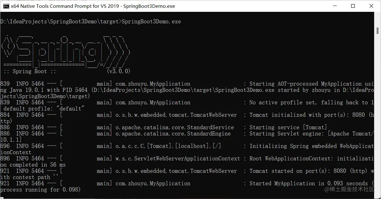 我们可以直接运行该 exe 来启动我们的 SpringBoot 应用: