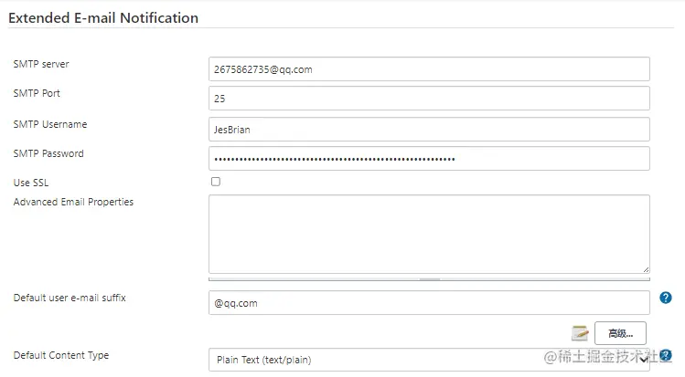 - 打开系统管理-系统配置-Extended E-mail Notification,不是系统管理-系统配置-邮件通知,注意这里是配置用来发邮件的邮箱!