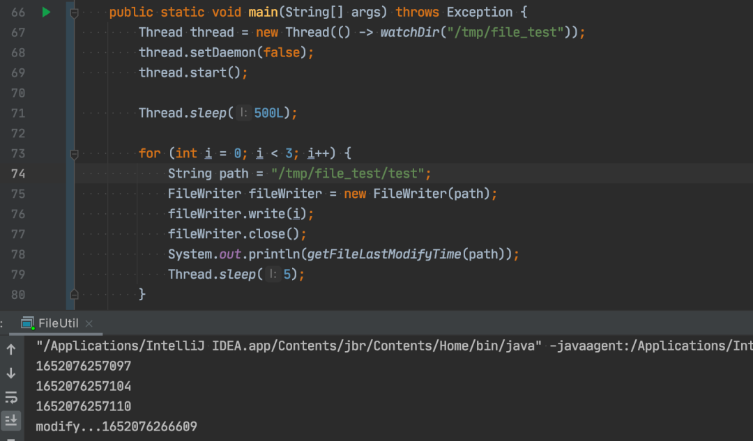 Thread thread = new Thread(() -> watchDir("/tmp/file_test"));