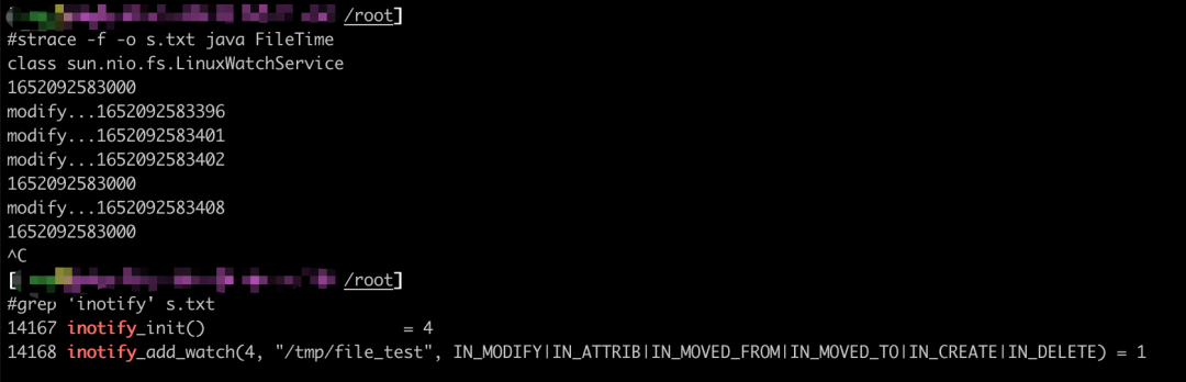 为了更加准确的验证是inotify,用strace抓一下系统调用,由于JVM fork出的子进程较多,所以要加-f命令,输出太多可以存入文件再分析: