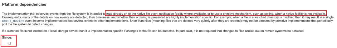 也就是说,不同的平台下会使用不同的实现,PollingWatchService是在系统不支持inotify的情况下使用的兜底策略。