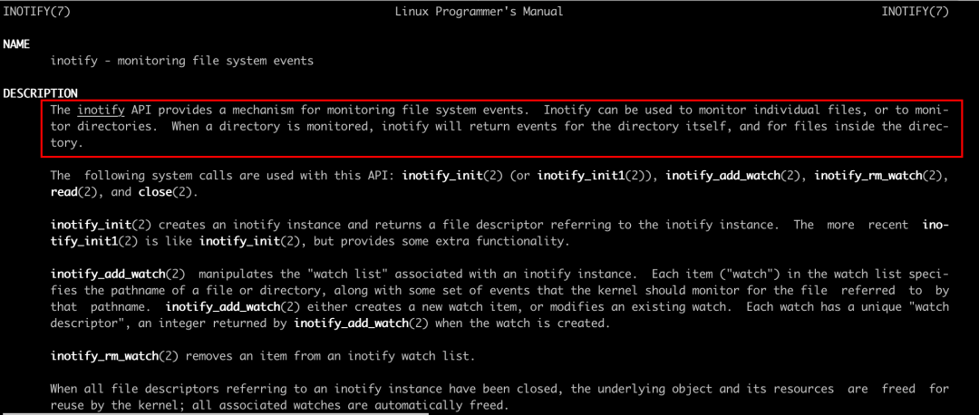 果然是用到了inotify系统调用的,再次验证了我们的猜想。