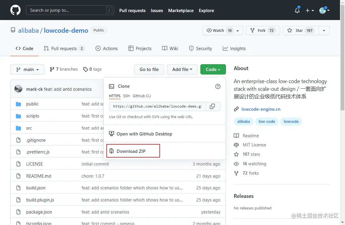 - 首先我们需要想下载LowCodeEngine编辑器的示例代码,下载地址:github.com/alibaba/low…