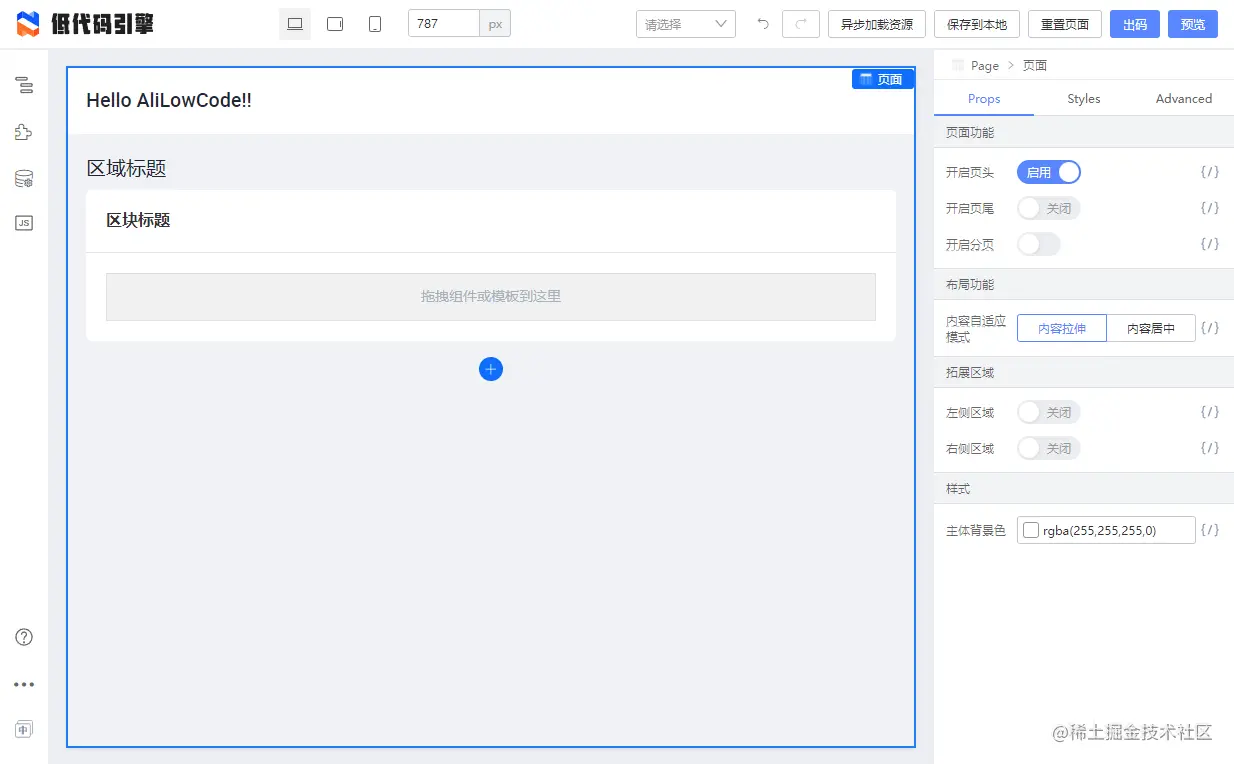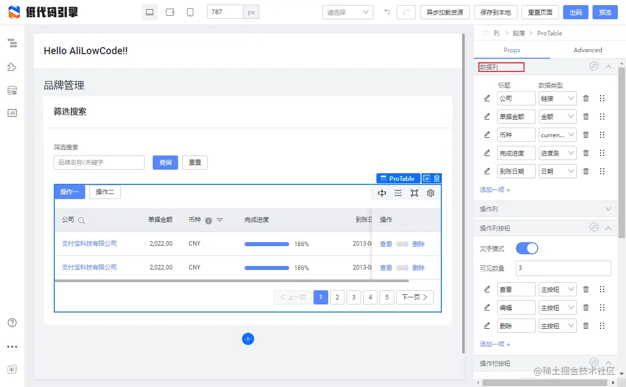 体验阿里开源的LowCodeEngine,一款企业级低代码开发工具。支持快速搭建应用界面,配置数据源,生成React代码。