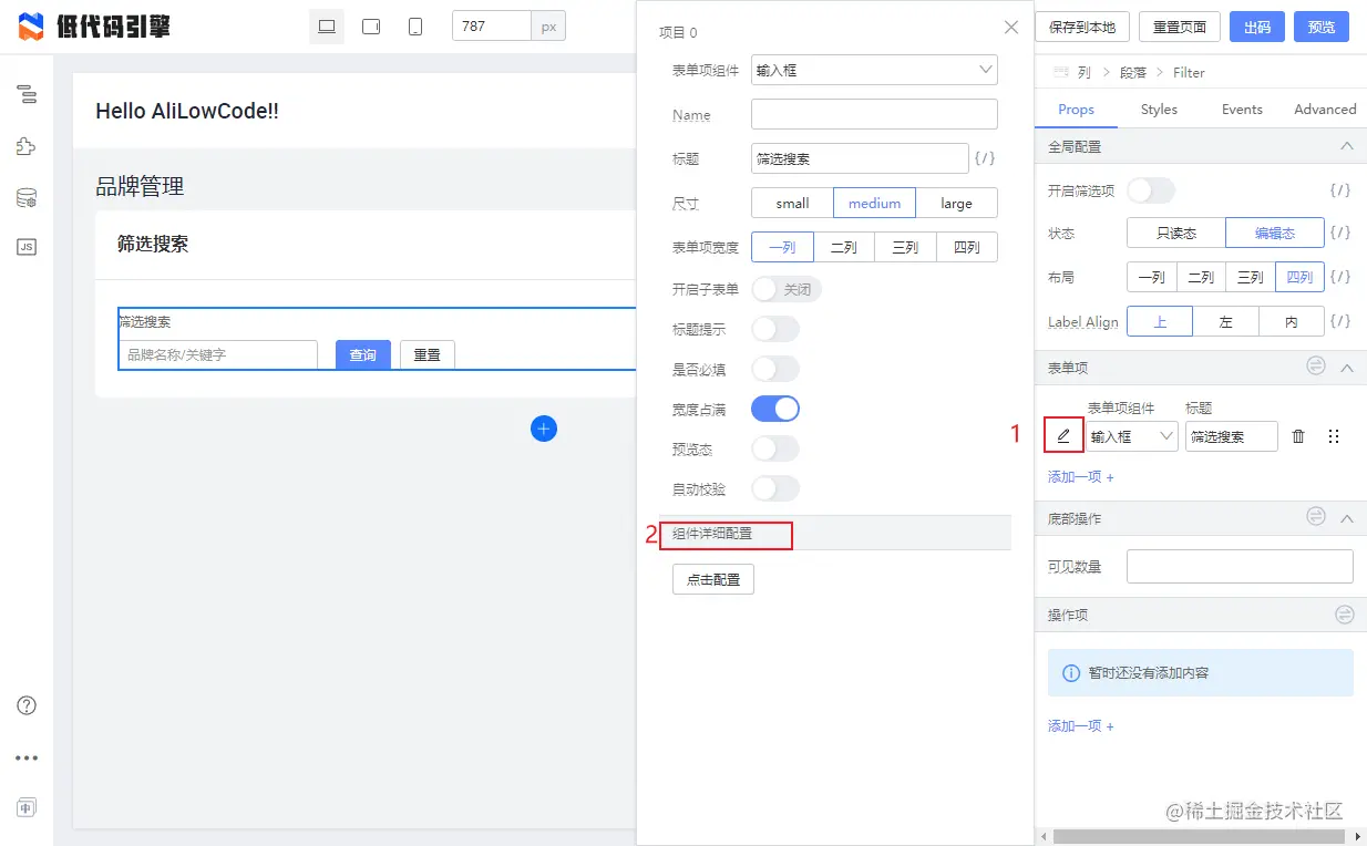 编辑按钮对组件进行详细设置,比如说组件外观和输入提示等;
