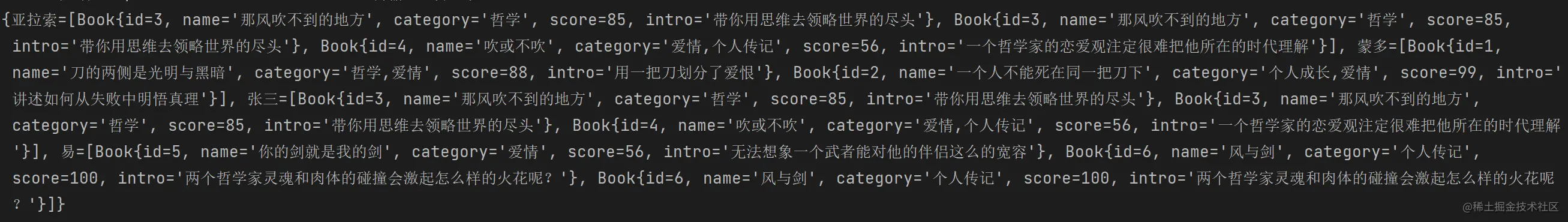books1.add(new Book(1L,"刀的两侧是光明与黑暗","哲学,爱情",88,"用一把刀划分了爱恨"));