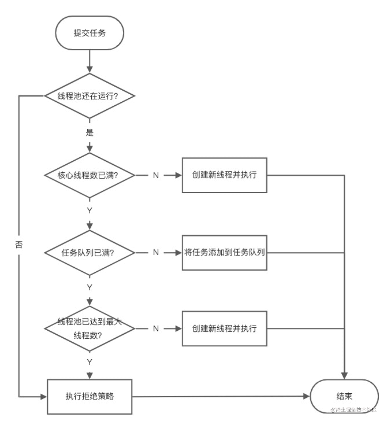 corePoolSize核心线程数参数的值时,线程池会创建一个核心线程去处理提交的任务; - 如果线程池核心线程数已满,即线程数已经等于