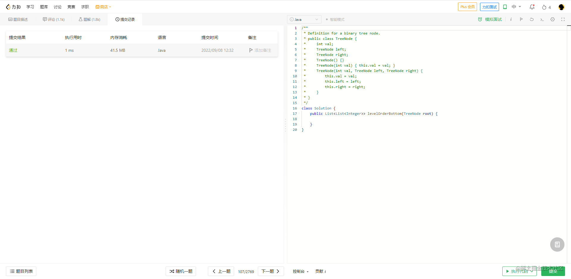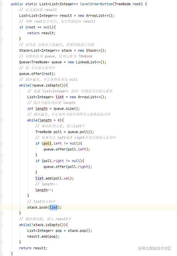 - 和上一题的唯一区别就是上一题是自顶上下遍历, 这道题是自下向上遍历