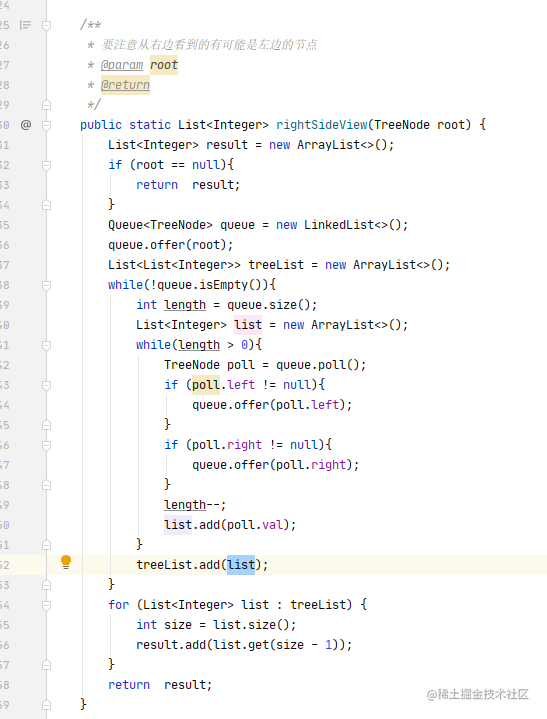 - 在遍历 list获取每一层节点的最后一个节点