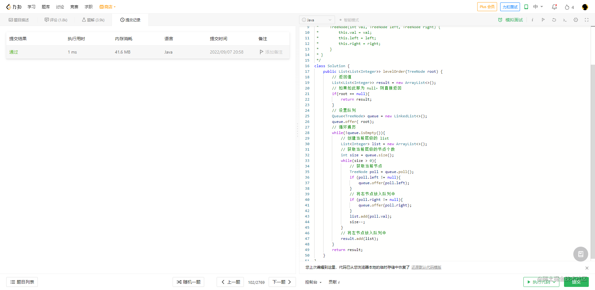 根据队列的长度可以判断出当前层的元素个数并遍历