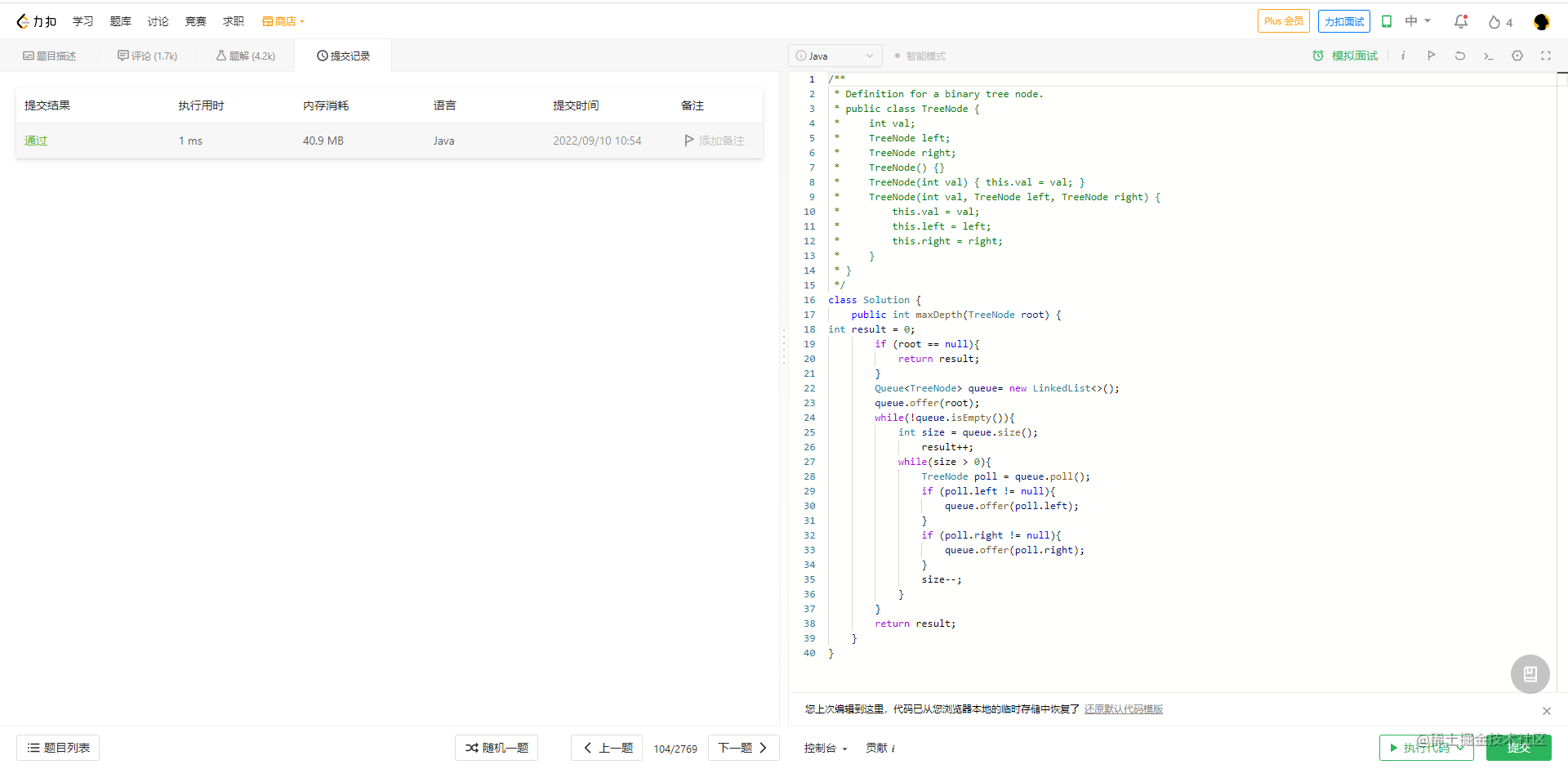 十、104. 二叉树的最大深度