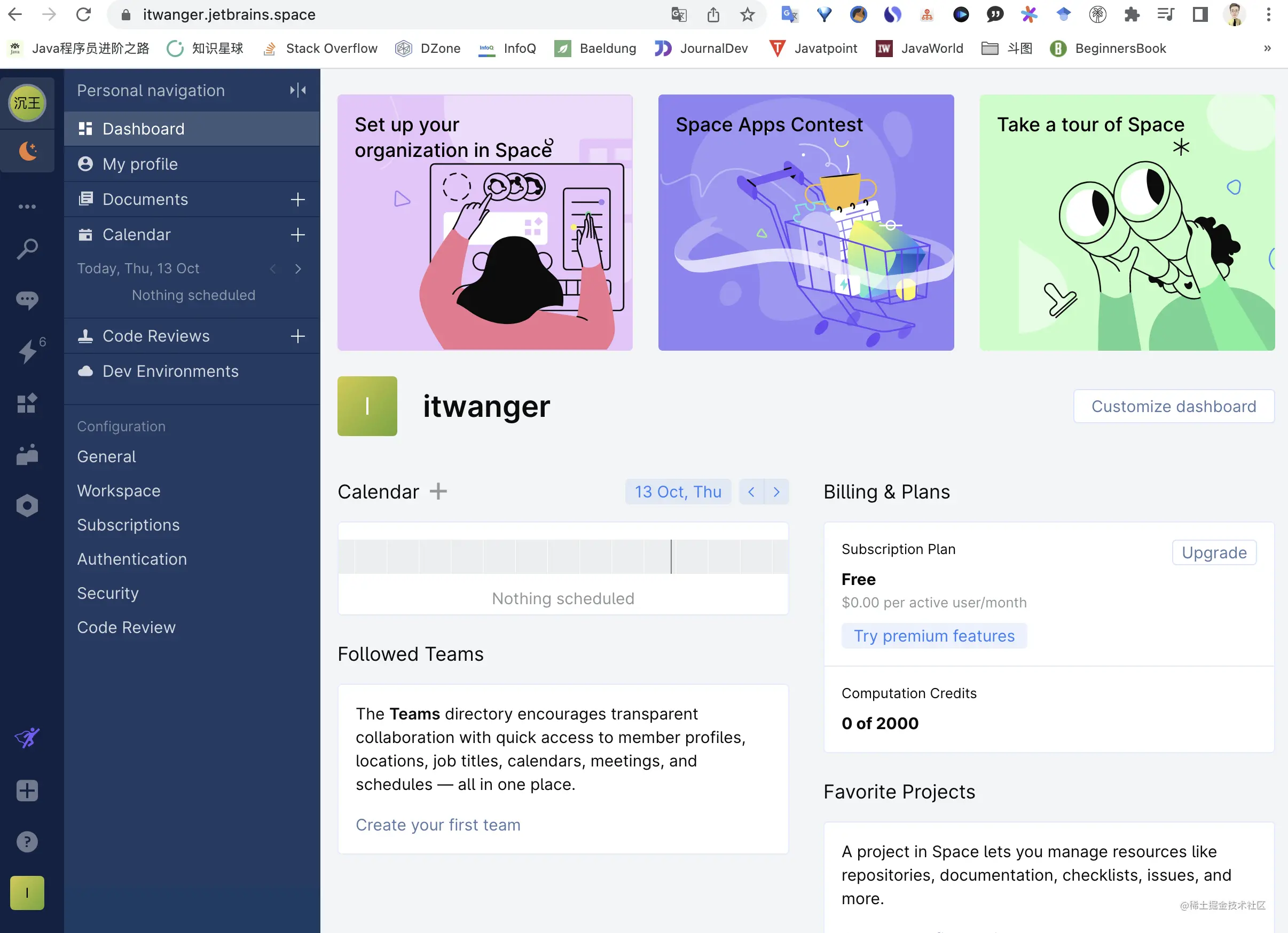 JetBrains 提供了免费的空间使用,我这里申请了一个,我们来体验一下。