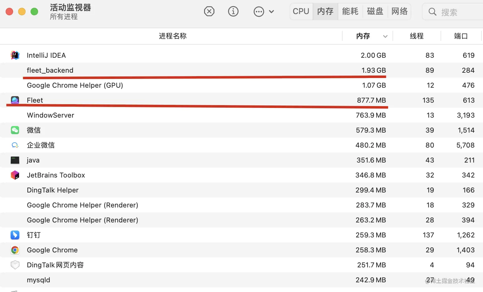 IDEA 差不多 2 G,Fleet 是只占了 877M,但还有一个 fleet_backend 的进程占用了 1.95G,这样算下来,比 Intellij IDEA 还“重”啊!!!!!!!