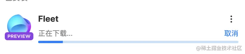直接点击安装,就可以看到 Fleet 的安装进度条了(下载速度并不算快🤮)。