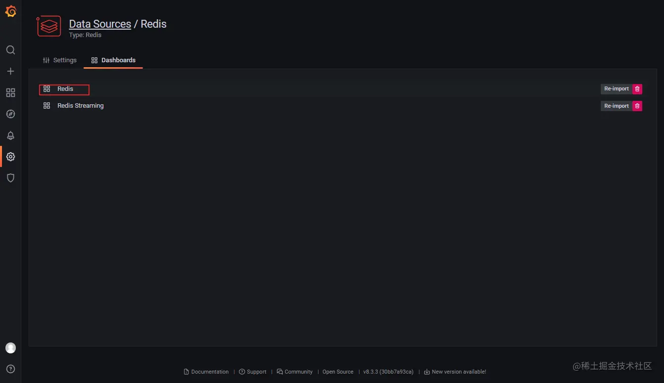 - 打开Dashboard选择Redis;