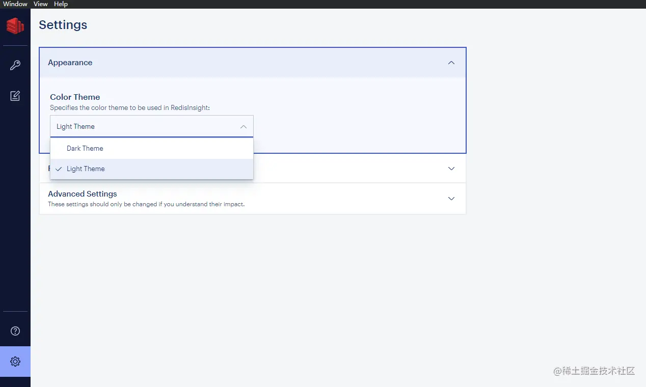- 另外RedisInsight还支持深色和浅色两种主题切换,在设置中即可更改。