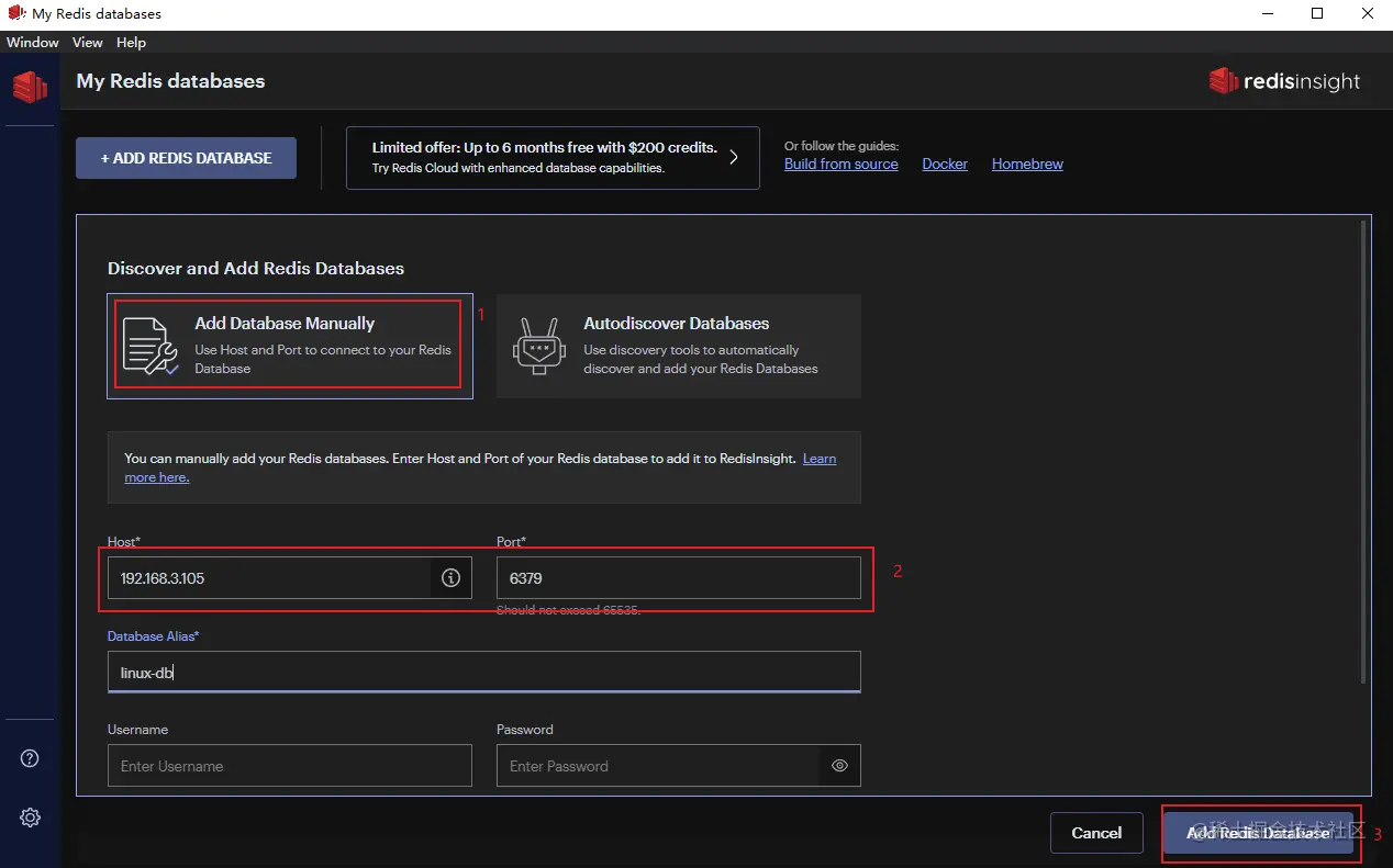 手动添加数据库,输入Redis服务连接信息即可;