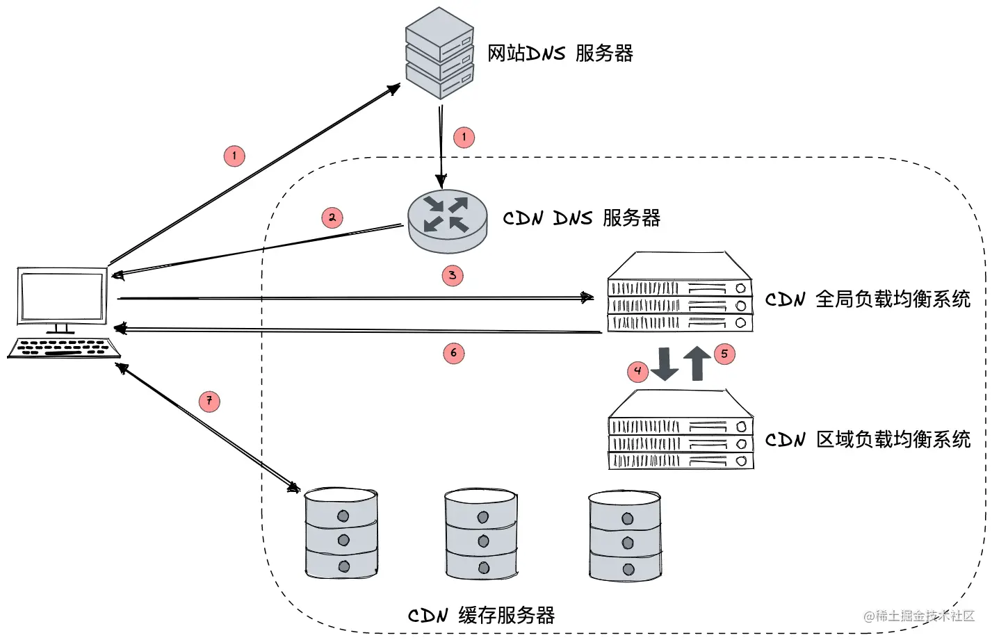 DNS 服务器根据用户 IP 地址,将域名解析成相应节点的缓存服务器 IP 地址,实现用户就近访问。使用 CDN 服务的网站,只需将其域名解析权交给 CDN 的 GSLB 设备,将需要分发的内容注入 CDN,就可以实现内容加速了。