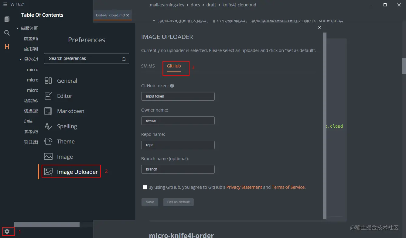 - MarkText也是支持文件上传的,可以上传到SM.MS图床和Github上去,通过
