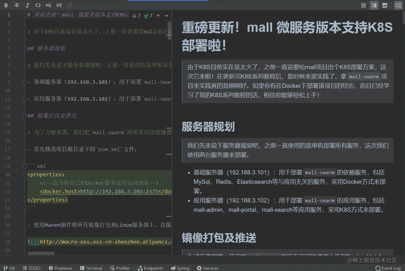 - 如果你用过一些Markdown编辑器的话,你会发现很多编辑器都是把界面分成两部分,一部分Markdown代码,一部分预览,比如IDEA中的编辑器;
