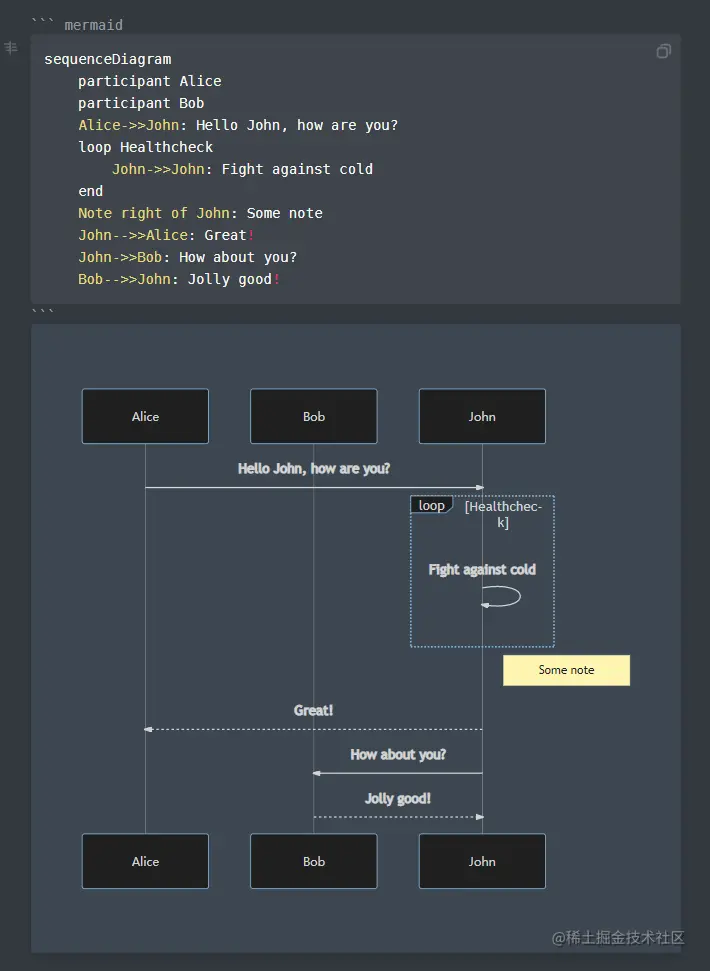 - MarkText还能支持各种图表,比如通过如下代码我们可以生成一张时序图。