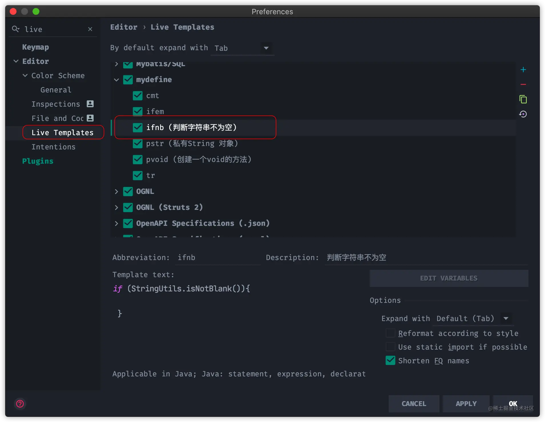 判断字符串是否为空,使用频率非常高,这里大家可以使用 IDEA Prefix 的功能,输入直接生成判空语句。