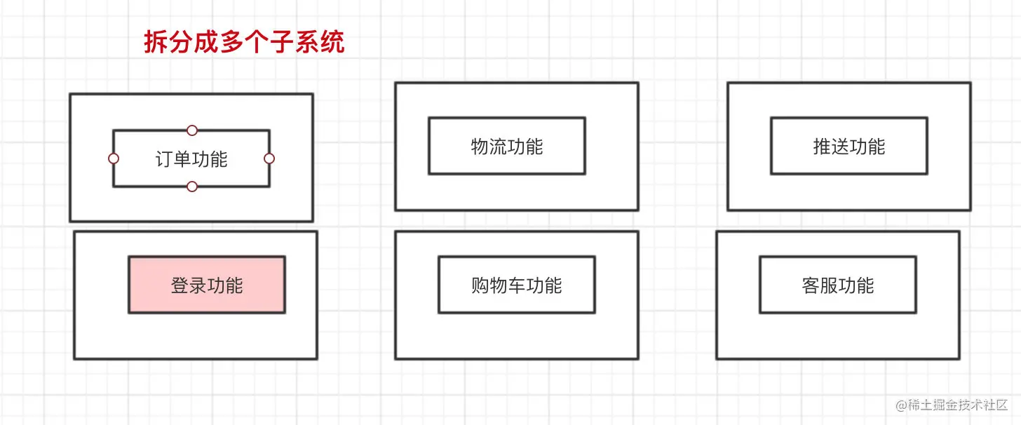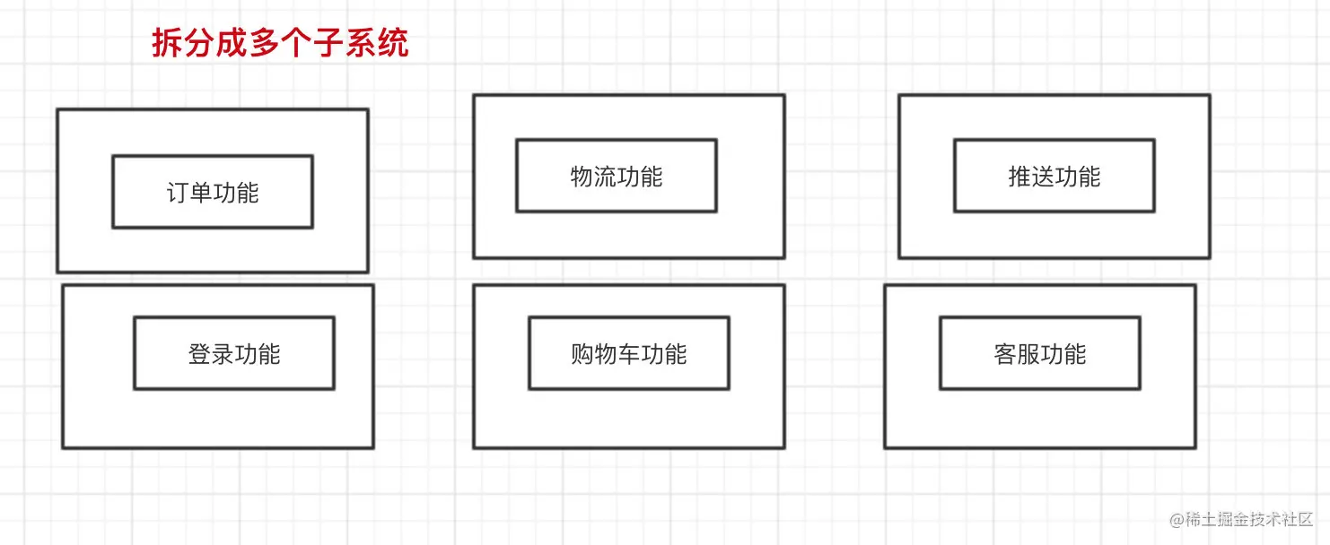 后来,我们为了合理利用资源和降低耦合性,于是把单系统拆分成多个子系统。