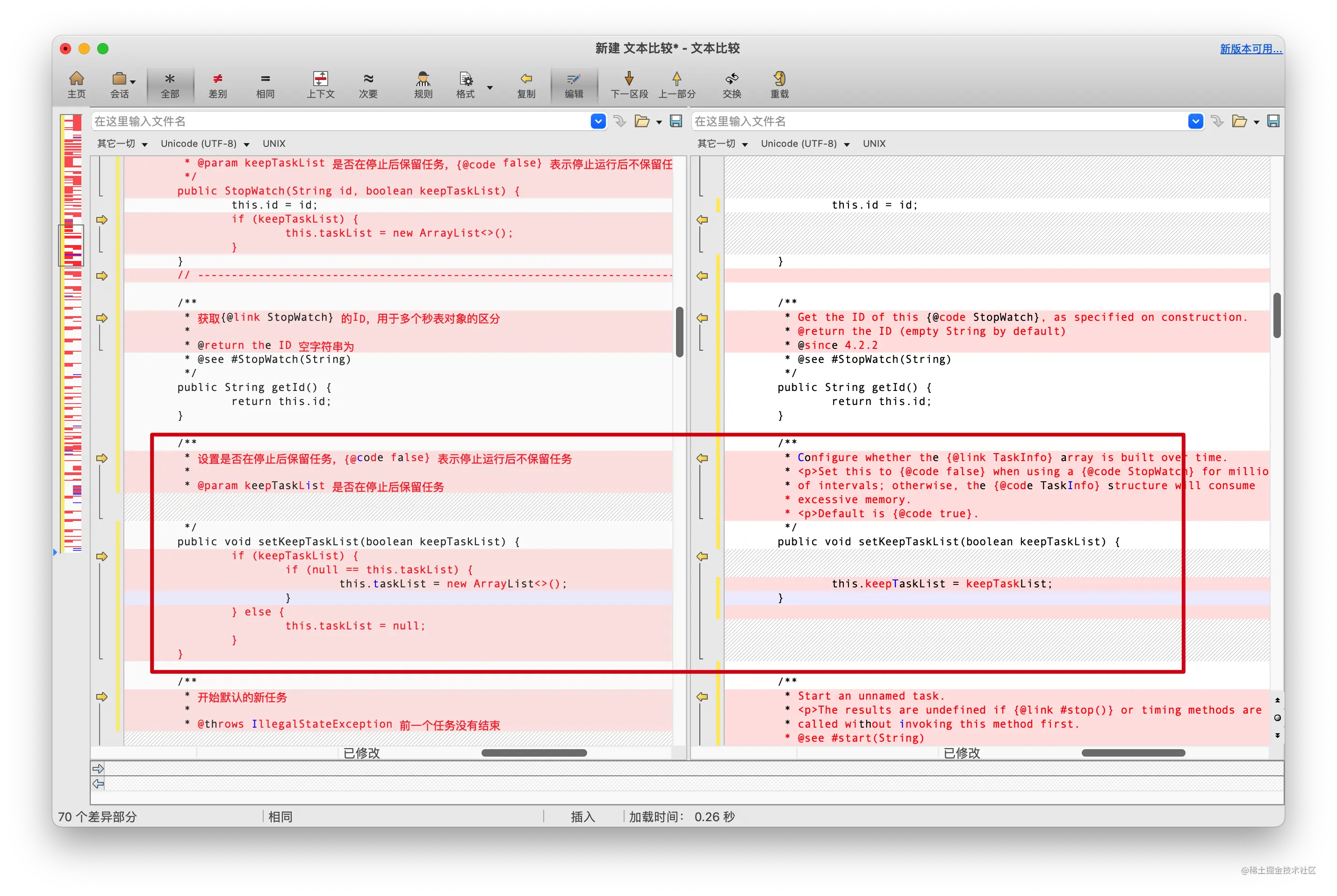使用 Beyond compare 比较后也能得出,两者除了一个中文注释,一个英文注释,代码几乎一样。setKeepTaskList 方法有比较大的不同。