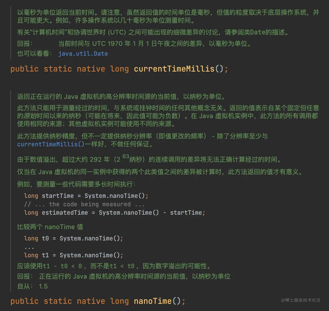 注意两者都是 native 方法,也就是说,值的粒度其实取决于底层的操作系统。