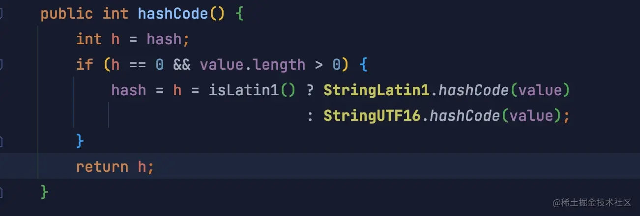 以下为 String 类的 hashCode() 方法