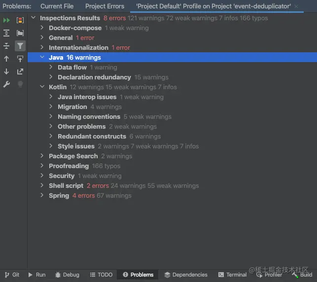 然后它将为您提供按语言/框架和类型分组的问题和潜在问题列表。